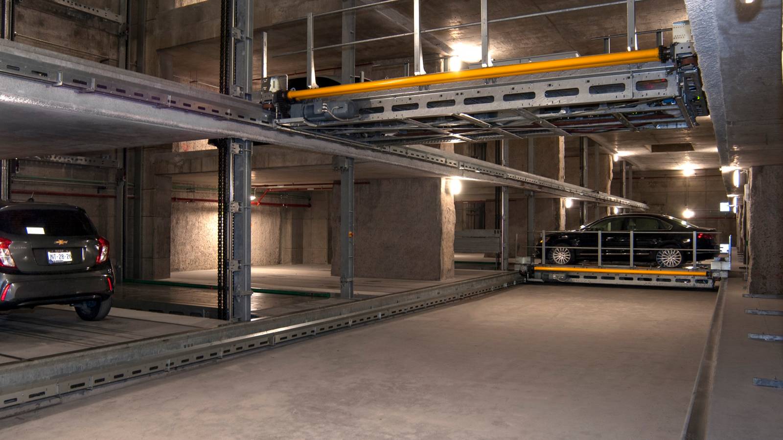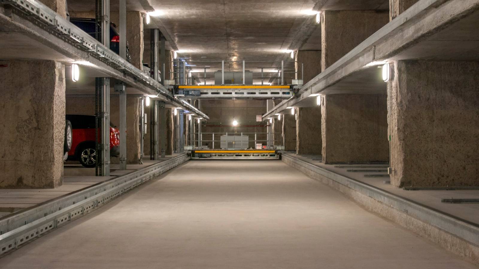 Similar to a high rack more car parking places are provided with the pallet-less system Multiparker 760. Cars are simple stacked side by side and one above the other.