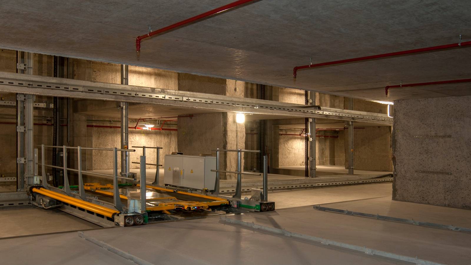 The Multiparker 760 is suitable for construction cubes similar to a high rack made out of concrete, as tower or pit version. When ever bigger floor plan areas are available but project configurations featuring less parking levels, nevertheless the Multiparker 760 captures several hundred parking places per level. At each level independently operating shuttles transfer and park the cars to concrete slab by way of the longitudinal pick-up transport system LAT. Short access and operation times are warranted.