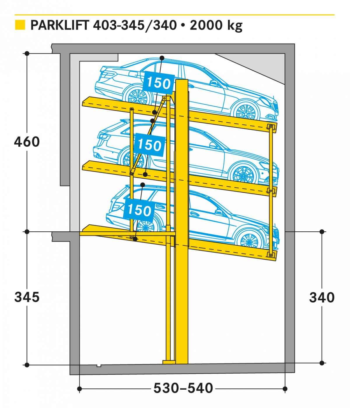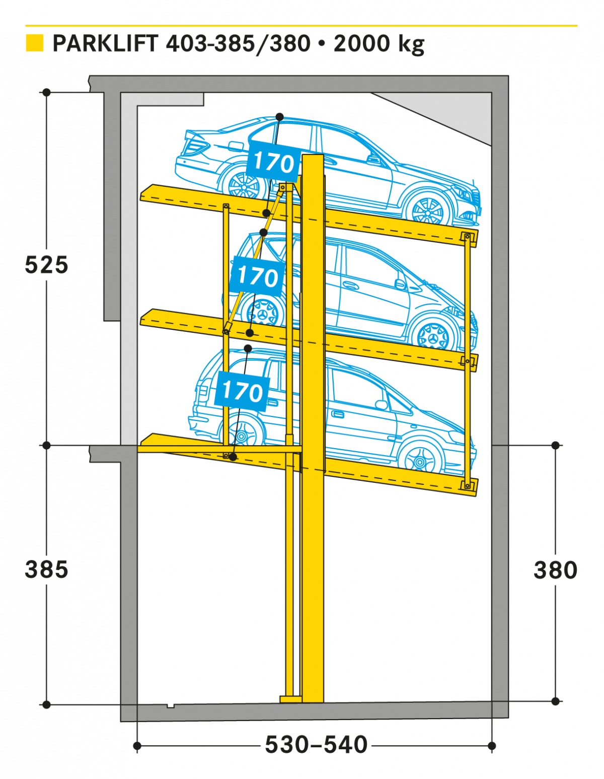 Three cars can park above each other on a single pit with Parklift 403.