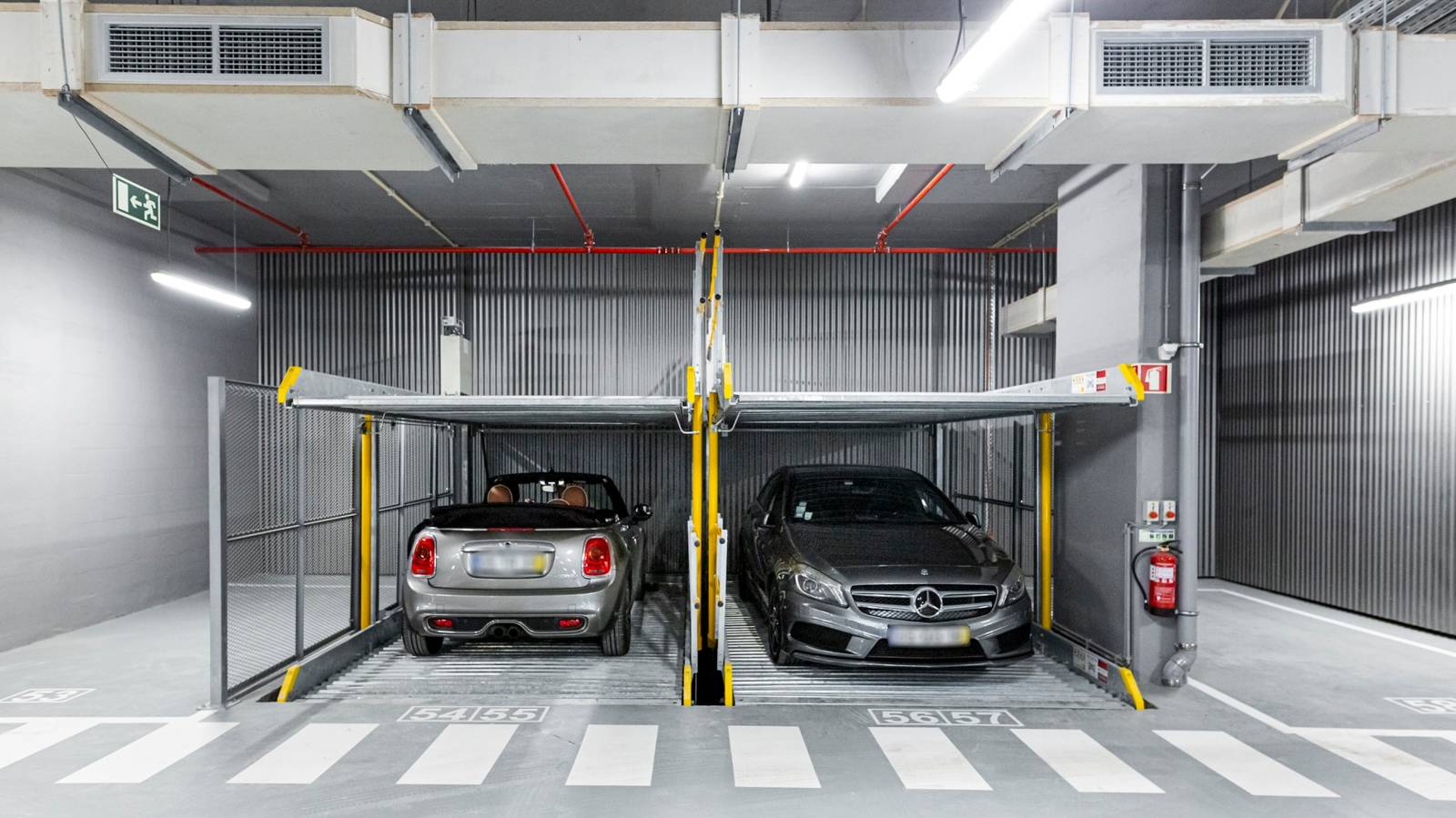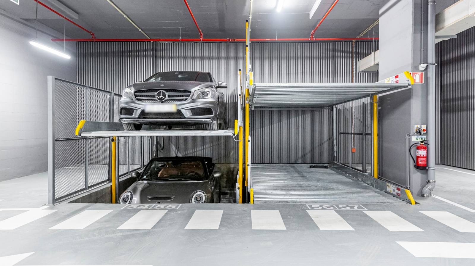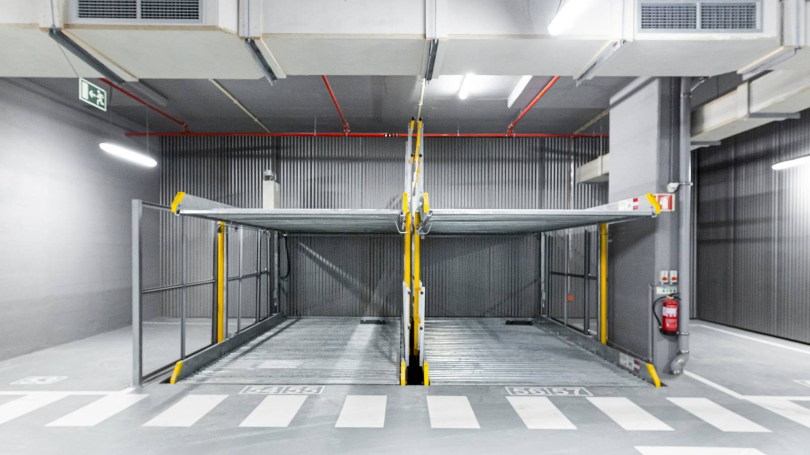 The new Parklift 450 also offers maximised installation dimension flexibility. Here the trend is to shift away from the rigidly set, 15 cm clearance increments in as far as the pit-depths are concerned and to move toward increased clearance flexibility. In fact, the newly designed pit depths provide for 5 cm clearance increments. Compared to predecessor models, the Parklift 450 furthermore features a clear ceiling height that is 5 cm less, without any reduction to the usual vehicle heights. How does this come about? The previous models feature an elevated platform for drainage of the water accumulating in the relative parking spaces, where the water drains down from the platform into drainage channels. The newly developed systems have done away with the elevation and have resolved the drainage issues by slightly sloping the platform giving it a minimal, 2 % inclination. The single systems are engineered for 2 cars, the double systems for 4 cars.